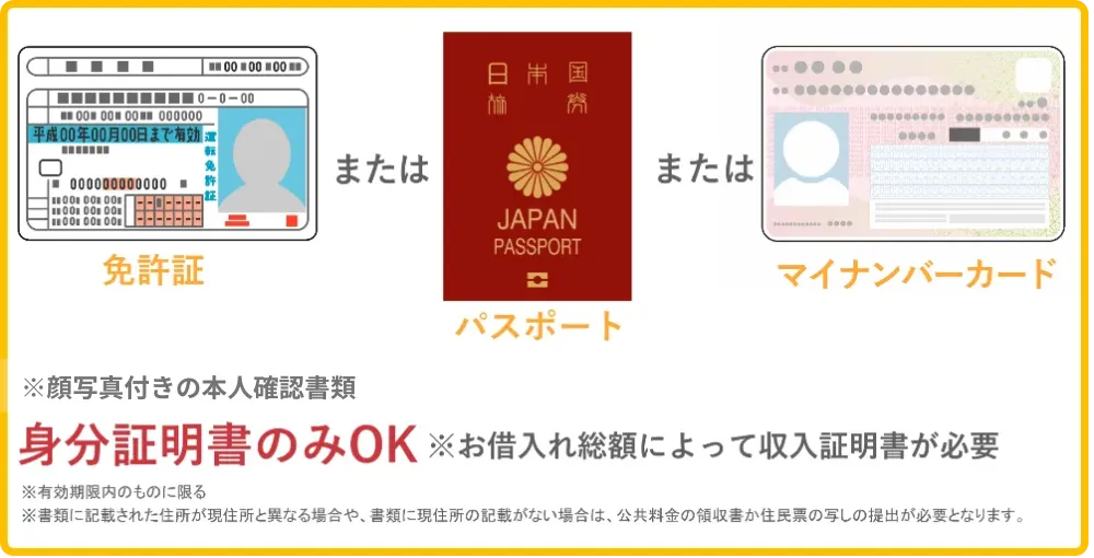 ・ 身分証とスマホだけで、WEB完結申込・ 収入証明書は不要※